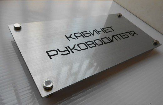 Таблички из нержавеющей стали. Главное достоинство табличек из нержавейки — стойкость от воздействий к любым внешний воздействиям, благодаря чему такие таблички «простоят» без видимых изменений не менее 100 лет. Стальные таблички прекрасно показали себя в самых сложных условиях — сверхнизкие температуры на севере, влажный климат с соленой водой на море а также химических производствах. Используется для фасадных табличек, ритуальной сфере а также при создании шильдиков когда нужна высокая износостойкость. Используемые методы нанесения: лазерная гравировка и травление с эмалью.