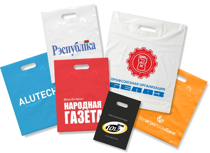 Пакеты из мягкого и нешуршашего полиэтилена. С усиленной вырубной ручкой и раздвижным дном. Прочные и презентабельные. Изготавливаются методом шелкографии. Срок изготовления — от 48 часов.